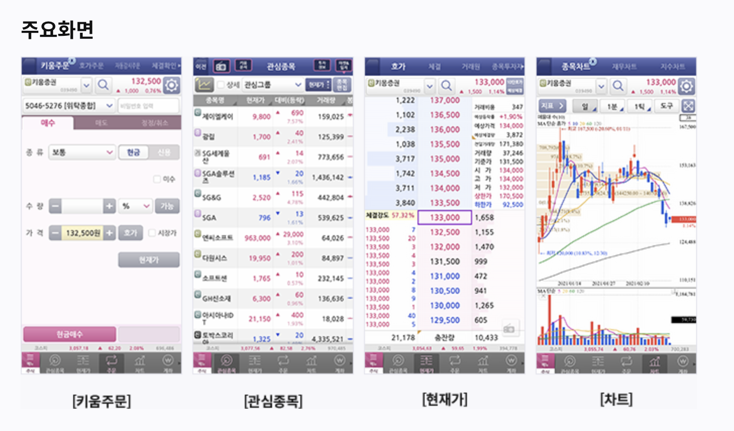 위의 화면은 키움증권 영웅문의 화면입니다. 공식 홈페이지에서 가져온 이미지입니다. 여러 기능이 많지만 직관적이라고 하기는 어렵습니다.